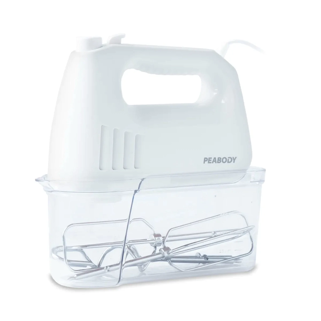 La Batidora de Mano Peabody PE-HM550 es la elección perfecta para darle un toque moderno y elegante a tu cocina mientras disfrutas de un rendimiento excepcional. Con su potente motor podrás mezclar y batir una variedad de ingredientes con facilidad. Esta batidora cuenta con accesorios que la hacen versátil, incluyendo batidores resistentes de tamaño normal y ganchos para masa, lo que la convierte en una herramienta indispensable en tu cocina. Además, su diseño ergonómico y su mango cómodo hacen que sea fácil de manejar. El sistema de apoyo sobre el bowl y el botón de expulsión simplifican aún más su uso. Con un elegante color blanco y medidas compactas, esta batidora es tanto funcional como estéticamente agradable para cualquier cocina.
