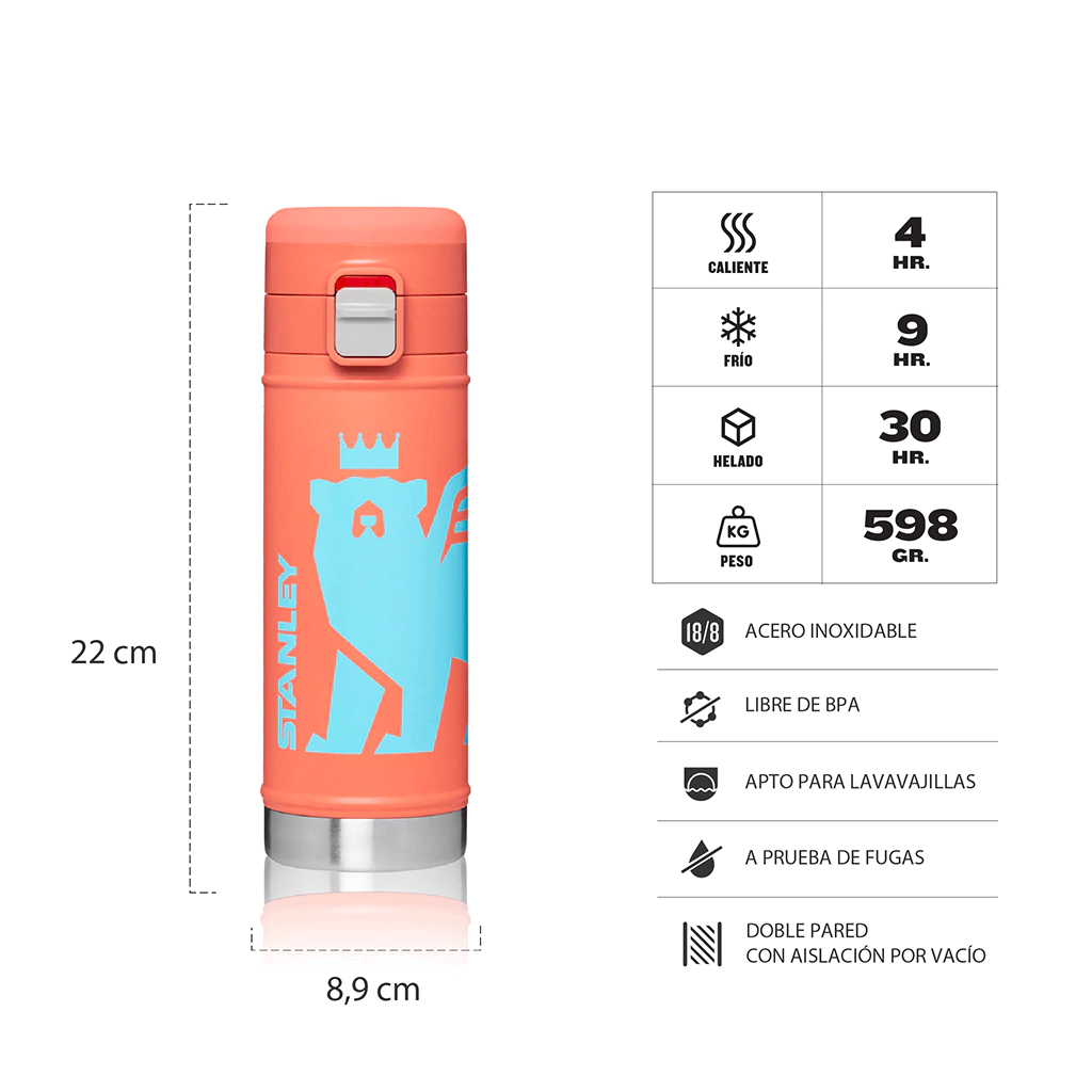 Cabe en la mayoría de los portavasos para que pueda viajar en su vehículo. El aislamiento de doble pared mantiene su té, café u otras bebidas calientes favoritas calientes hasta por 4 horas o frías hasta por 9 horas. Esta tapa de acción de gatillo hace que este termo de viaje sea a prueba de derrames y fácil de usar con una sola mano. La tapa está diseñada con un botón pulsador que abre la boquilla en la parte superior.