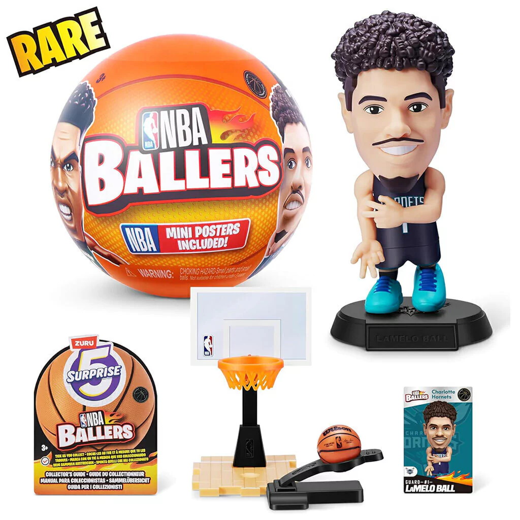 ¡Sumergite en la emoción del baloncesto con las Cápsulas 5 Surprise NBA Ballers de Zuru! Coleccioná tus jugadores favoritos de la NBA, desde Luka Dončić hasta Kevin Durant. Descubri los momentos más épicos congelados en pleno festejo. Además, encuentra los jugadores Ultra Rare y consigue a Lebron James y Stephen Curry con sus camisetas City Edition. Cada cápsula viene con accesorios sorpresas increíbles, como un aro y lanzador de baloncesto, pegatinas y el codiciado trofeo dorado ultra raro. ¡Y eso no es todo! Armá tu propia cancha de básquet con las piezas de rompecabezas que incluyen las cápsulas. ¡Coleccioná y jugá como un verdadero campeón!