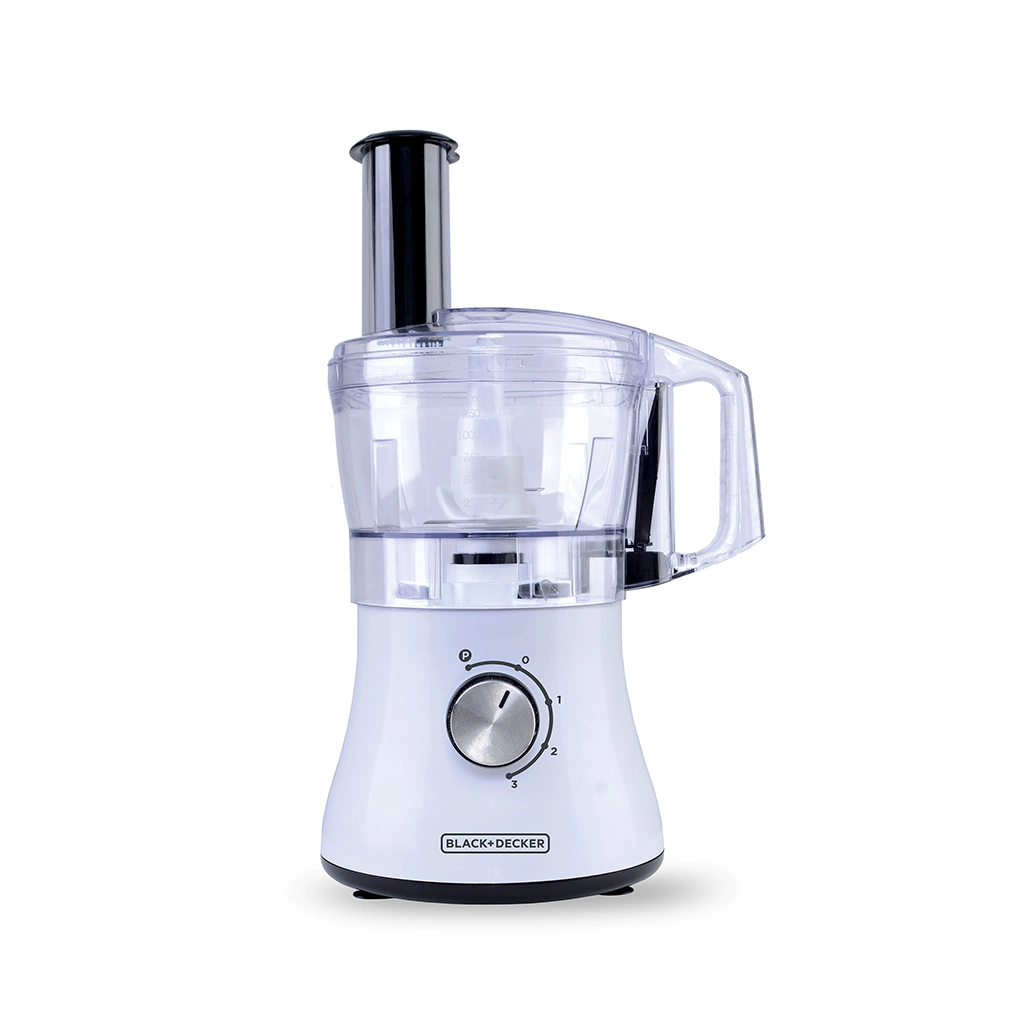 El Procesador de Alimentos de 5 Tazas de BLACK+DECKER es un electrodoméstico útil para procesar los alimentos. Le brinda la flexibilidad de rebanar, picar, desmenuzar, rallar o hacer puré, así necesite mucha o poca cantidad. Las cuchillas para picar de acero inoxidable y el potente motor de 750 watts trabajan en combinación para procesar los alimentos rápidamente en el recipiente de procesamiento de 5 tazas.