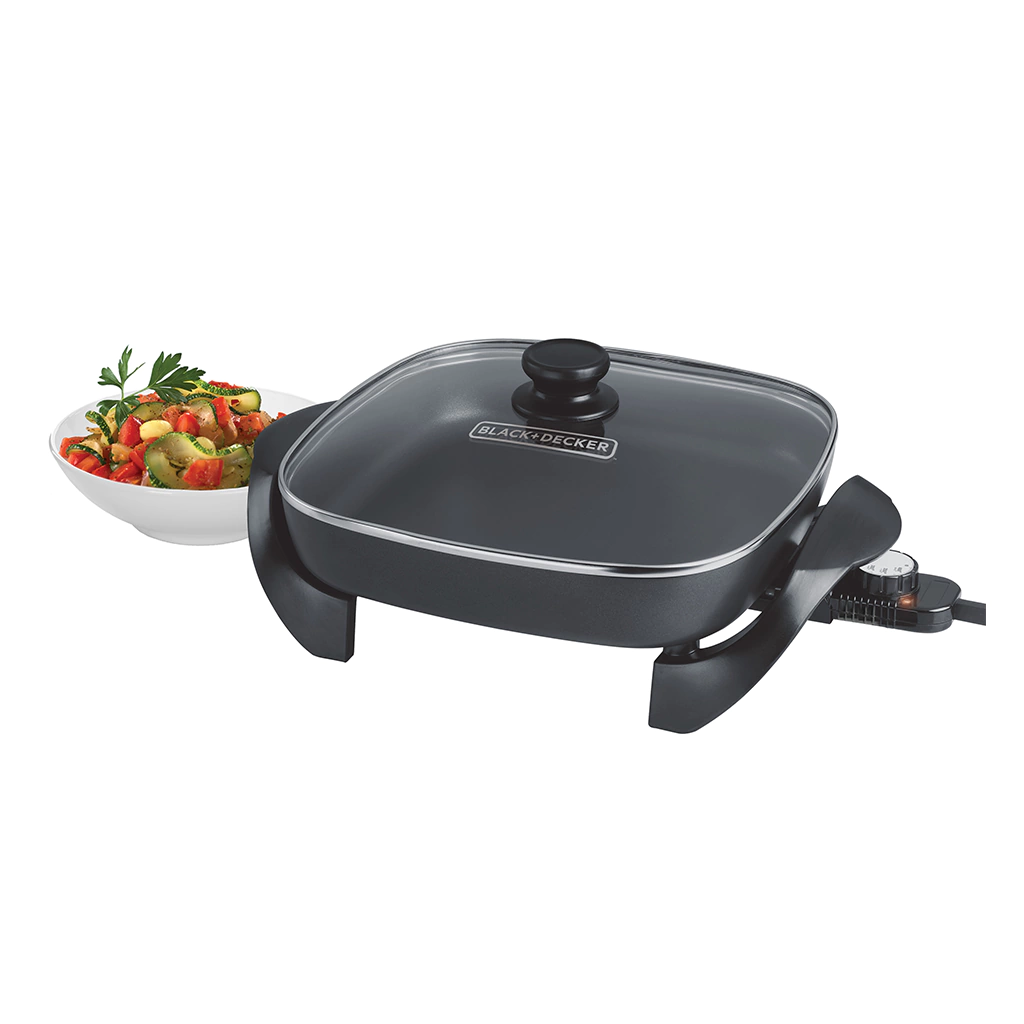 Sartén BLACK DECKER cuenta con una zona de cocción y el interior profundo para cocinar sano para toda la familia. El control de temperatura variable de cocina rápida y asas frescas al tacto - perfectos para servir de mesa. Exceso de grasa se elimina con la pata de inclinación pan aceite y grasas de lo que estás cocinando.